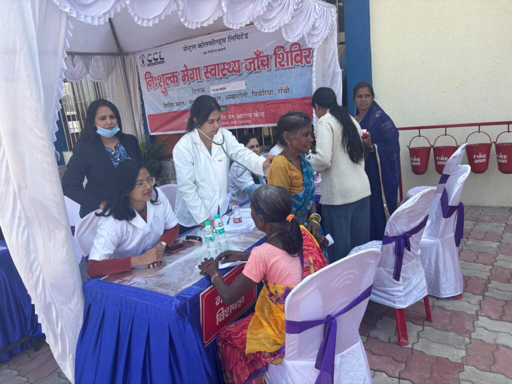 Demonstrating its continued commitment towards community healthcare and social responsibility, Central Coalfields Limited (CCL) organized a free mega health check-up camp through its Jan Arogya Kendra, Gandhinagar, on Friday at Srijan Valley School, Ambatoli, in Ranchi.