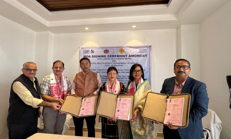 NTPC Limited, as a Nikshay Mitra under the Pradhan Mantri TB Mukt Bharat Abhiyan (PMTBMBA), has signed a Memorandum of Agreement (MoA) with the State Health Agency, Department of Health, Government of Manipur to provide nutritional support to 1,800 tuberculosis (TB) patients across 16 districts of the state.